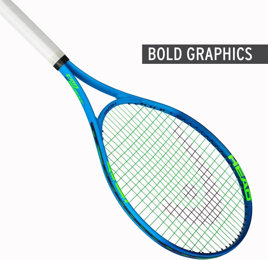 The racket boasts a large head size, providing a larger sweet spot for more consistent and powerful shots.